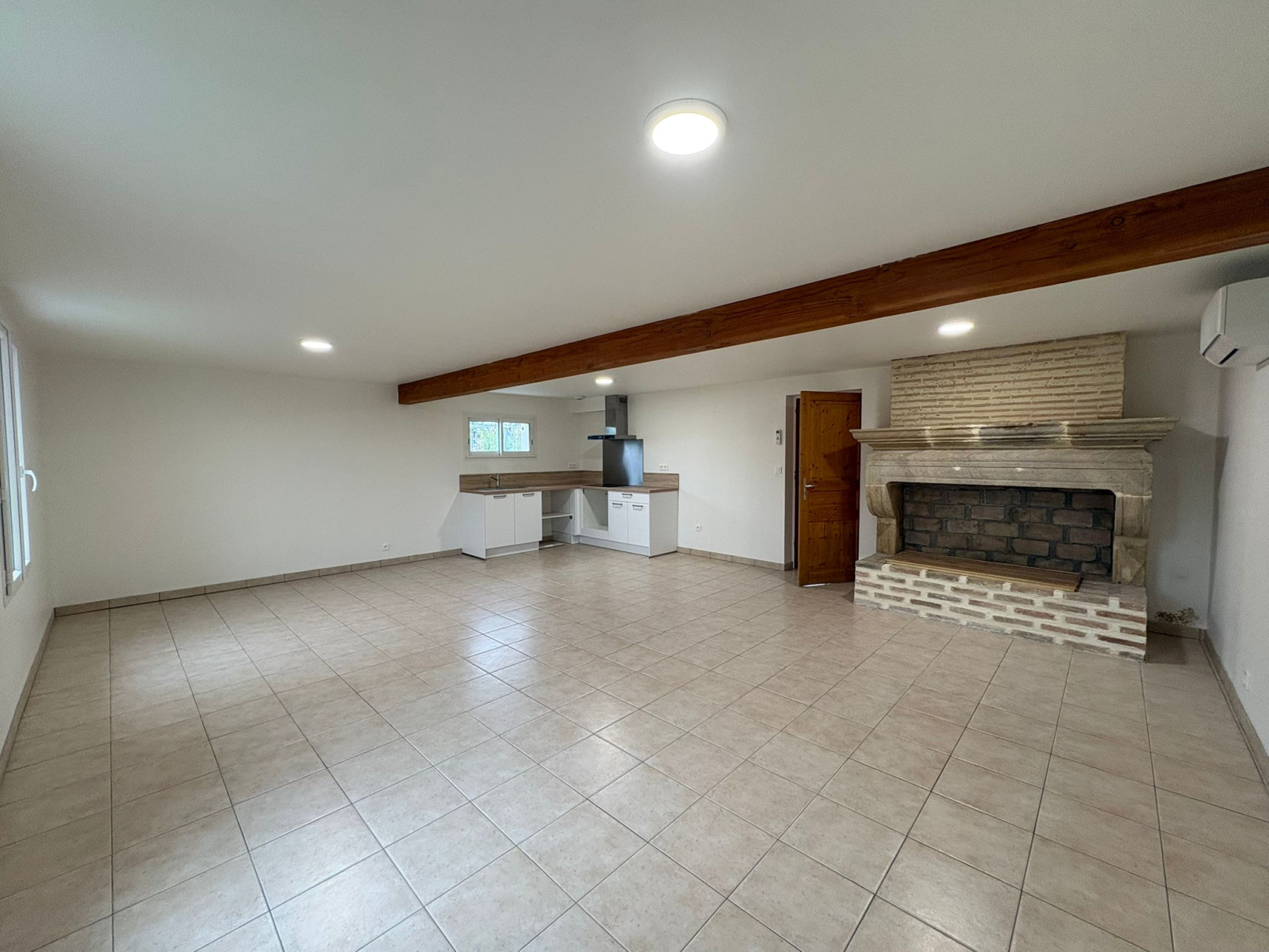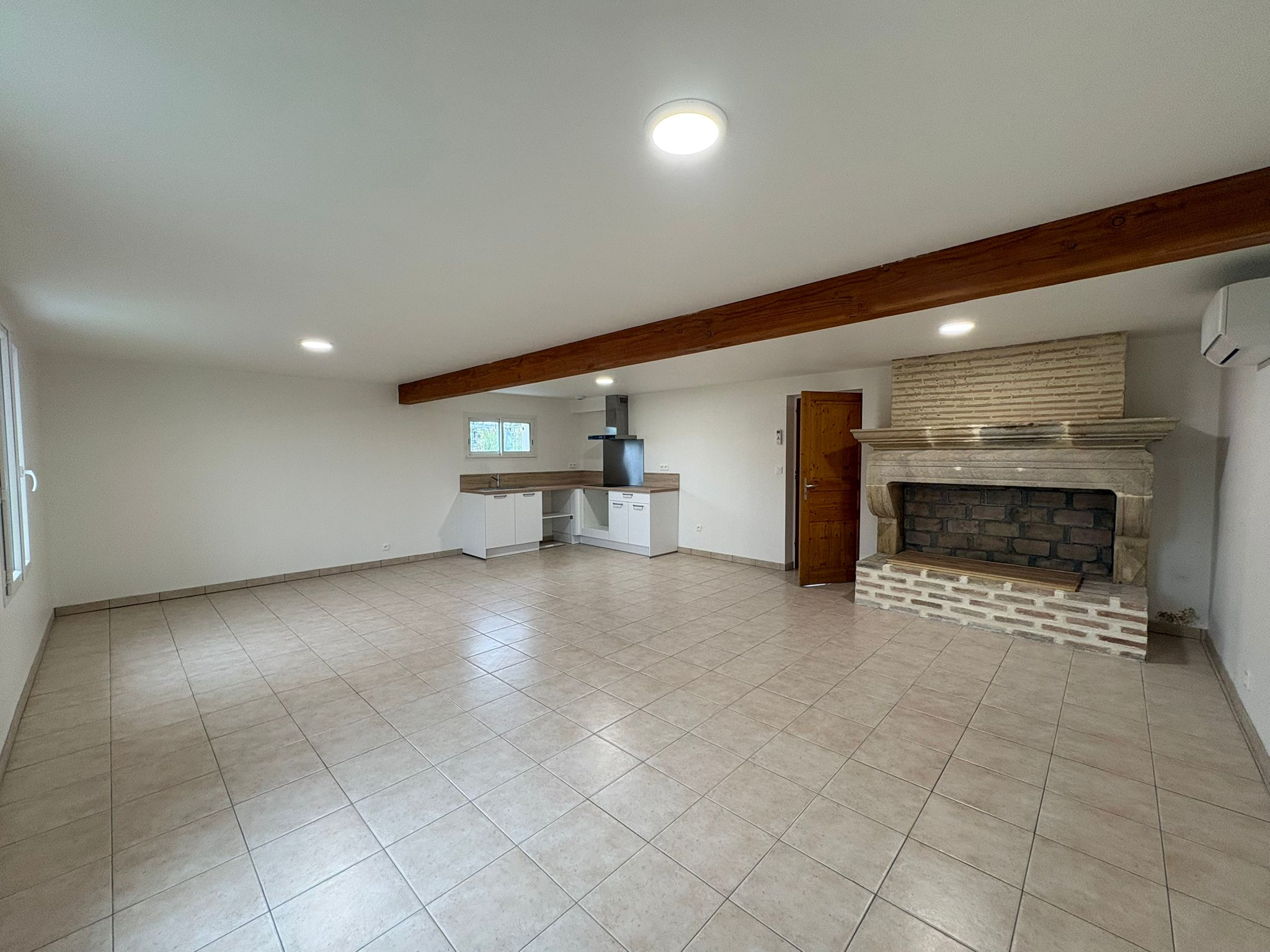 Sur la commune d'Aillas, charmante maison rénovée à neuf comprenant au rez-de-chaussée, une grande entrée, un WC avec lave main, une chambre, un grand salon/séjour avec cuisine ouverte équipée d'une plaque et d'une hotte. L'espace séjour dispose de deux splits garantissant un confort été comme hiver. Une cheminée décorative. A l'étage 2 chambres plus une chambre d'appoint (8.80m²), une salle d'eau avec WC. Le couloir de l'étage est équipé d'un split également.