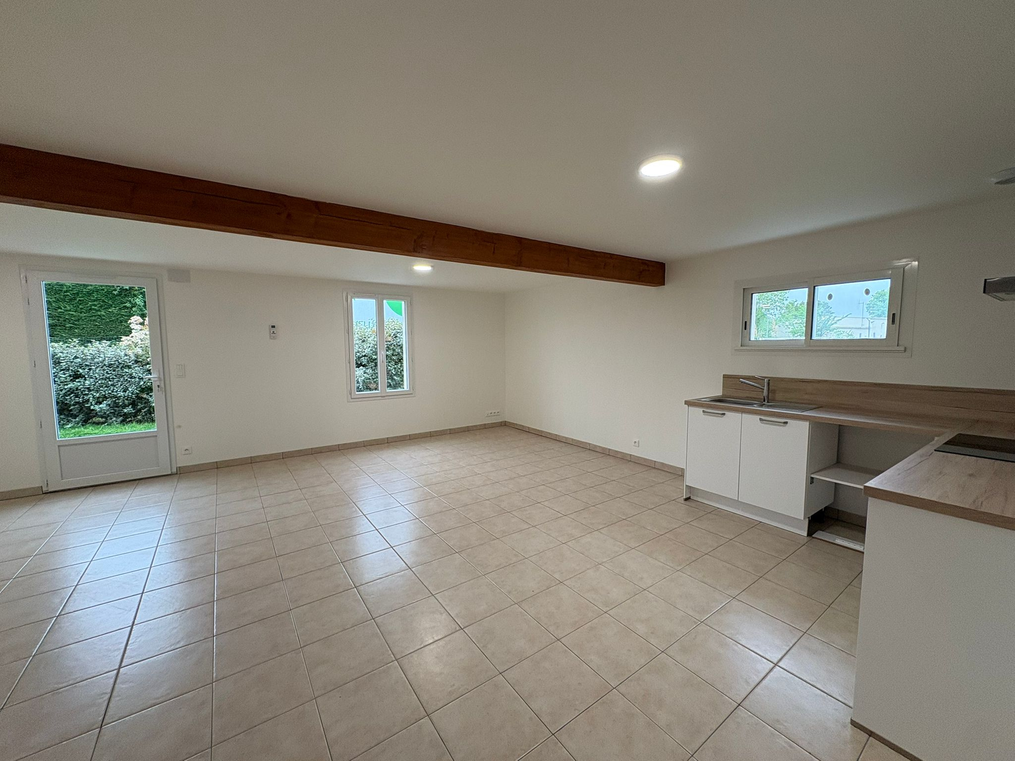 La maison est attenante sur un côté à une autre maison. Il y a un espace jardin ouvert qui peut être clôturé par le/les locataire(s).